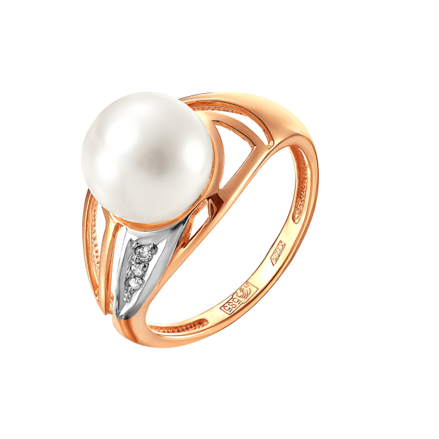 Кольцо из красного золота с жемчугом и фианитами (041819)