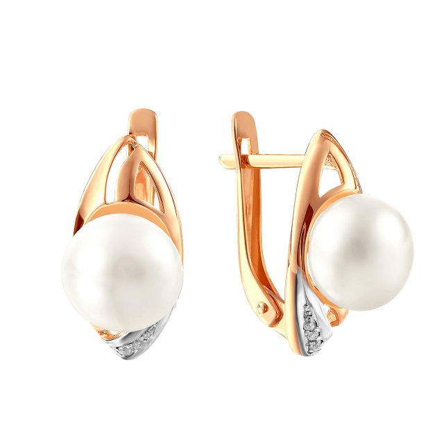 Серьги из красного золота с жемчугом и фианитами (041820)