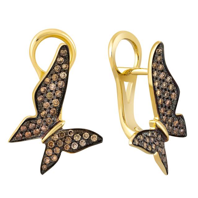 Серьги из жёлтого золота с бриллиантами "Бабочки" (046451)