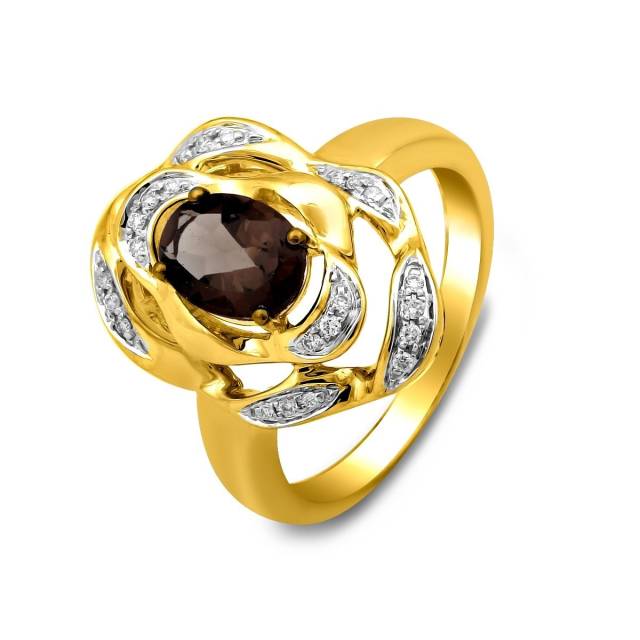 Кольцо из жёлтого золота с бриллиантами и дымчатым кварцем (025929)
