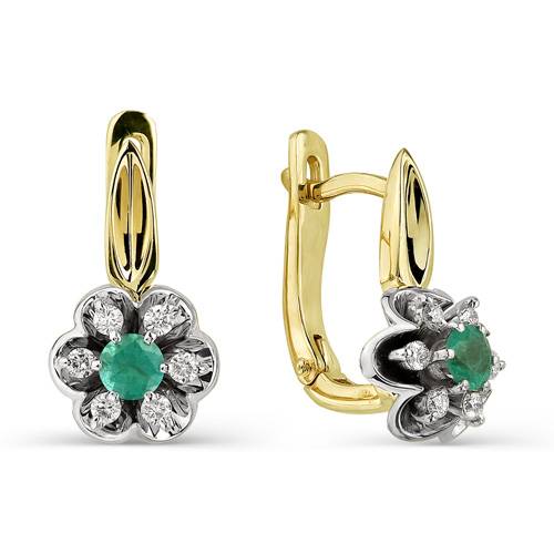 Серьги из жёлтого золота с бриллиантами и изумрудами (033627)
