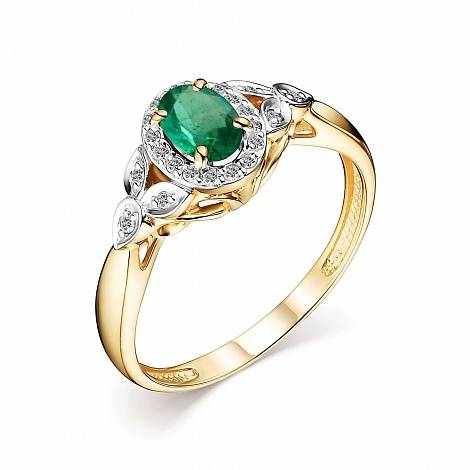 Кольцо из жёлтого золота с бриллиантами и изумрудом (048764)