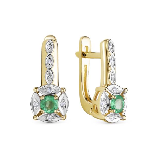 Серьги из жёлтого золота с бриллиантами и изумрудами (054793)