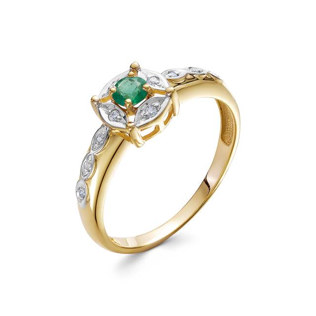 Кольцо из жёлтого золота с бриллиантами и изумрудом (054792)