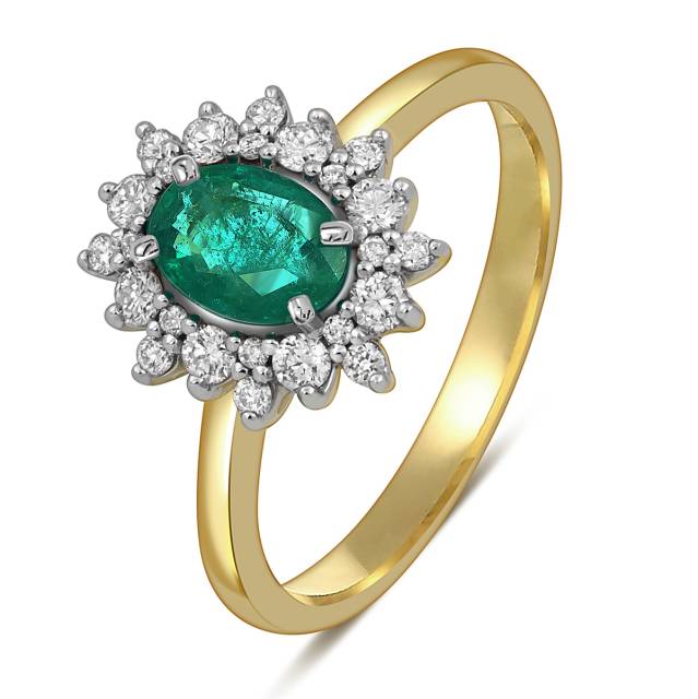 Кольцо из жёлтого золота с бриллиантами и изумрудом (055677)