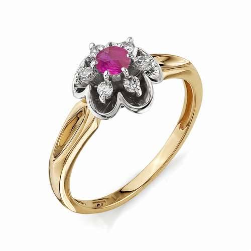 Кольцо из жёлтого золота с бриллиантами и рубином (039520)
