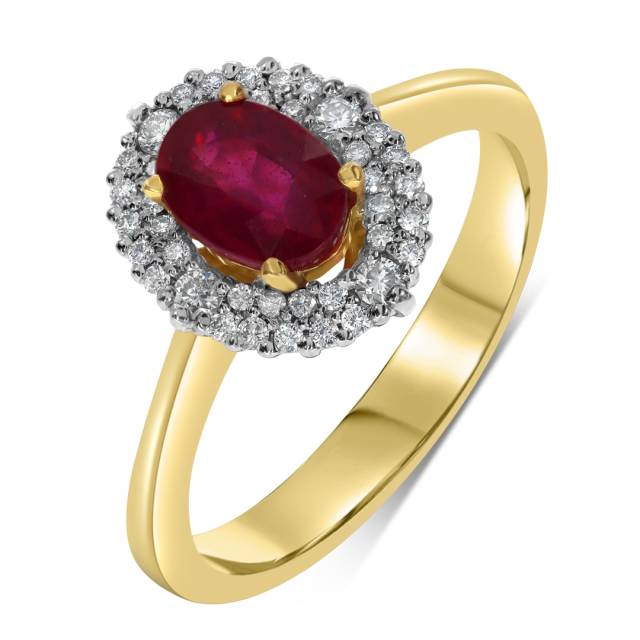 Кольцо из жёлтого золота с бриллиантами и рубином (046112)