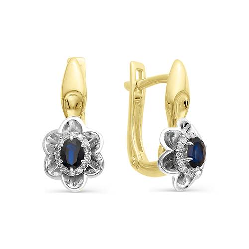 Серьги из жёлтого золота с бриллиантами и сапфирами (034148)