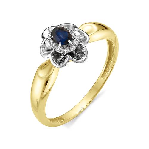 Кольцо из жёлтого золота с бриллиантами и сапфиром (034736)