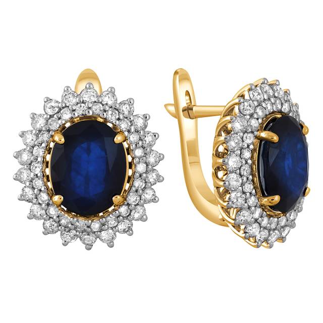Серьги из жёлтого золота с бриллиантами и сапфирами (045667)