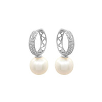 Серьги из жёлтого золота с фианитами и жемчугом (058608)