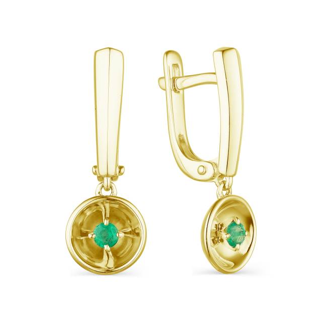Серьги из жёлтого золота с бриллиантами и изумрудами (041887)