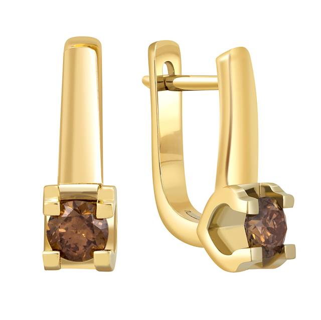 Серьги из жёлтого золота с коньячными бриллиантами (049301)