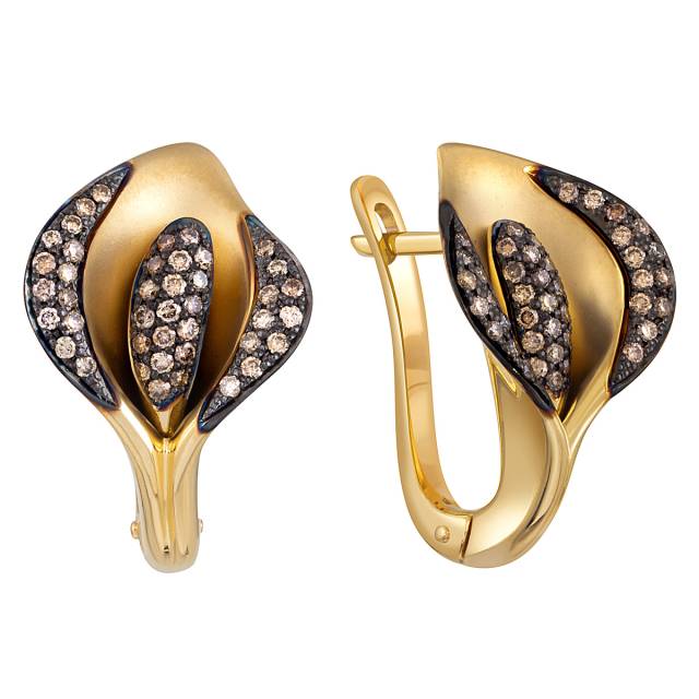 Серьги из жёлтого золота с коньячными бриллиантами (053813)