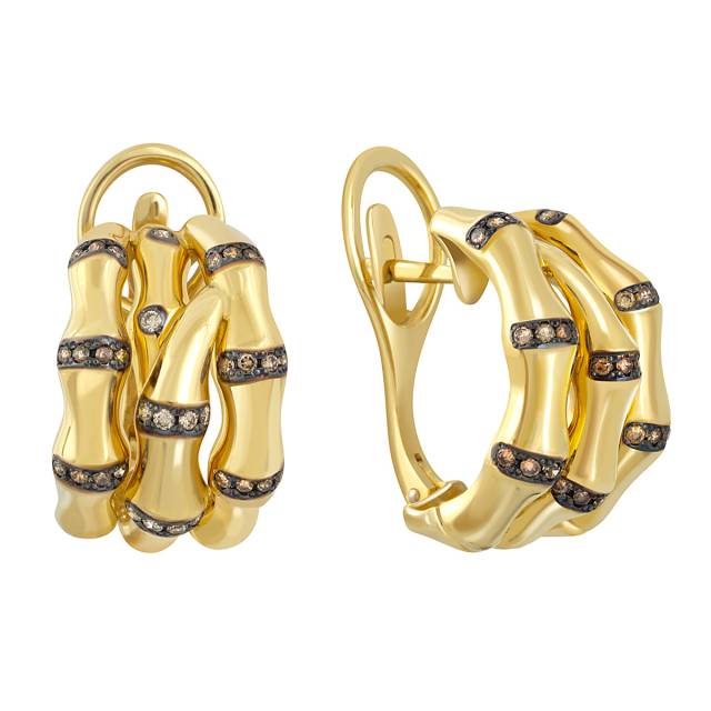 Серьги из жёлтого золота с коричневыми бриллиантами (040316)