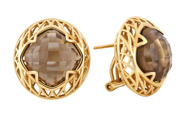 Серьги из жёлтого золота с раухтопазами (043436)