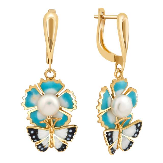 Серьги из жёлтого золота с жемчугом и эмалью (017808)