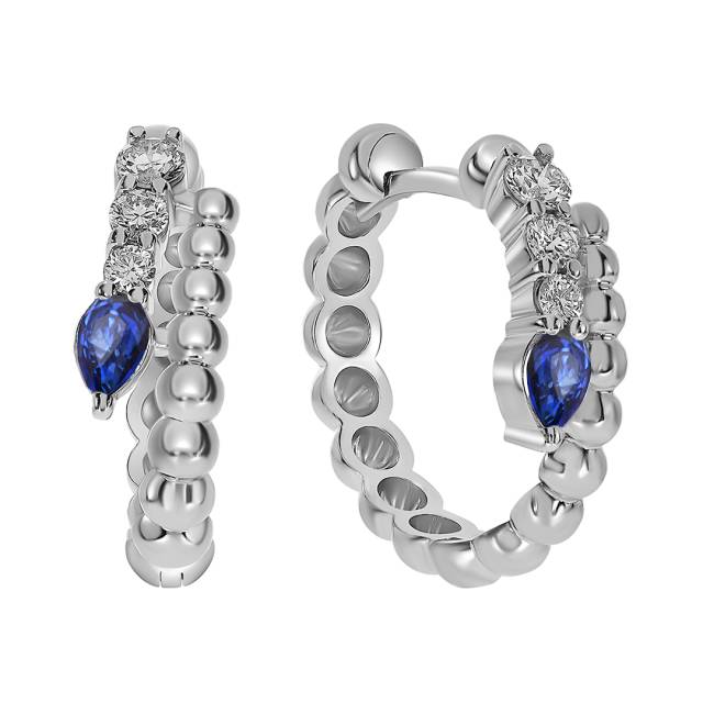 Серьги конго из белого золота с бриллиантами и сапфирами (060992)