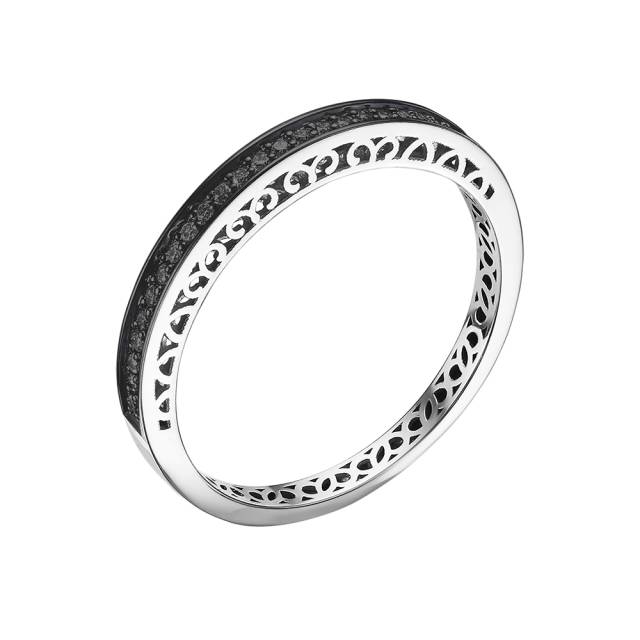 Кольцо из белого золота с чёрными бриллиантами (050017)