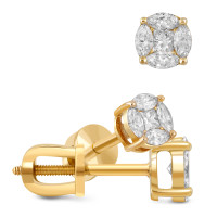 Серьги пусеты из жёлтого золота с жёлтыми бриллиантами (052070)