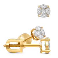 Серьги пусеты из жёлтого золота с бриллиантами (063396)