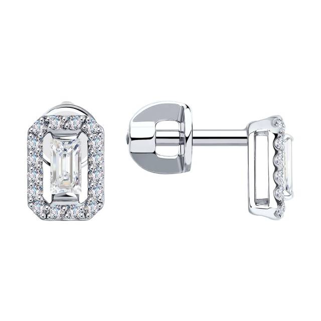 Серьги пусеты из белого золота с бриллиантами (031638)