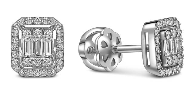 Серьги пусеты из белого золота с бриллиантами (055564)