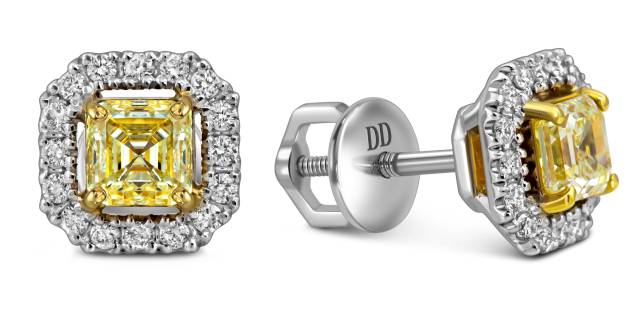 Бриллиант (2шт., ашер, 0.85 карат, Fancy yellow/5 А)