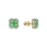 Серьги пусеты из белого золота с бриллиантами и изумрудами (055233)