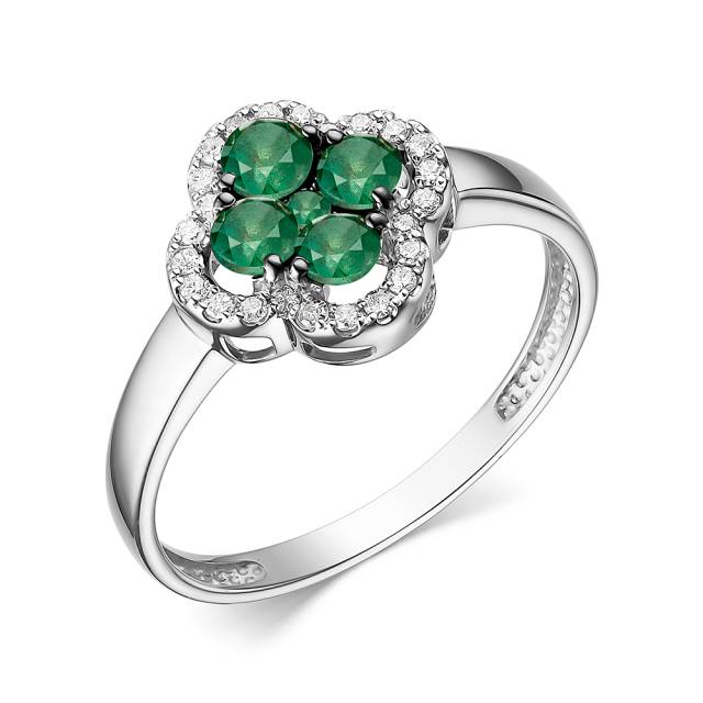 Кольцо из белого золота с бриллиантами и изумрудами (055760)