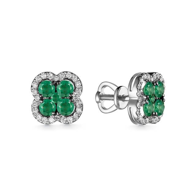 Серьги пусеты из белого золота с бриллиантами и изумрудами (055759)