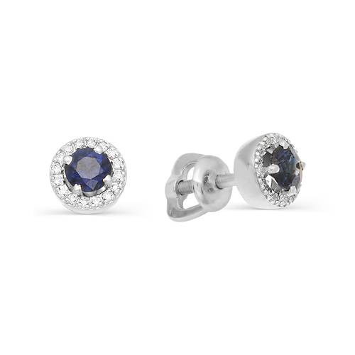 Серьги пусеты из белого золота с бриллиантами и сапфирами (031532)