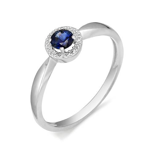 Кольцо из белого золота с бриллиантами и сапфиром (031284)