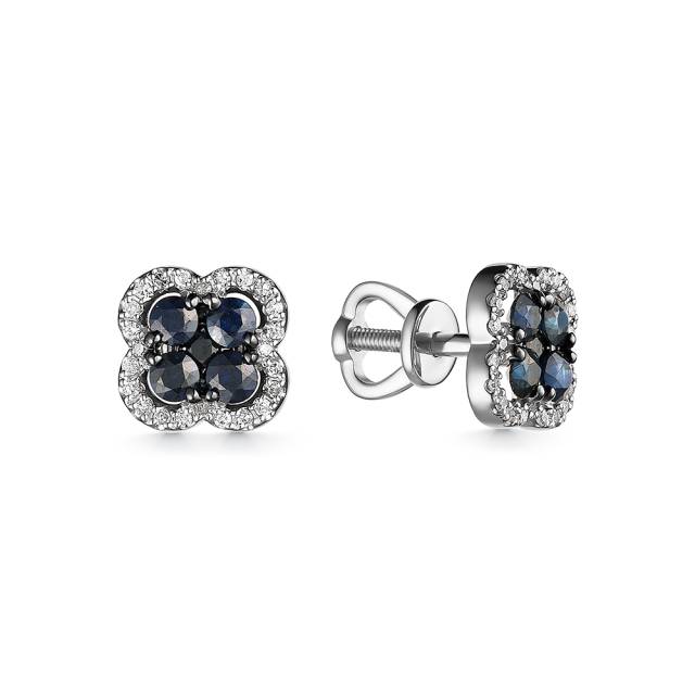 Серьги пусеты из белого золота с бриллиантами и сапфирами (055773)