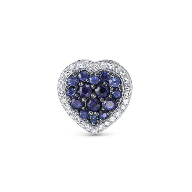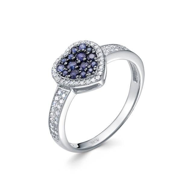 Кольцо из белого золота с бриллиантами и сапфирами "Сердце" (060397)