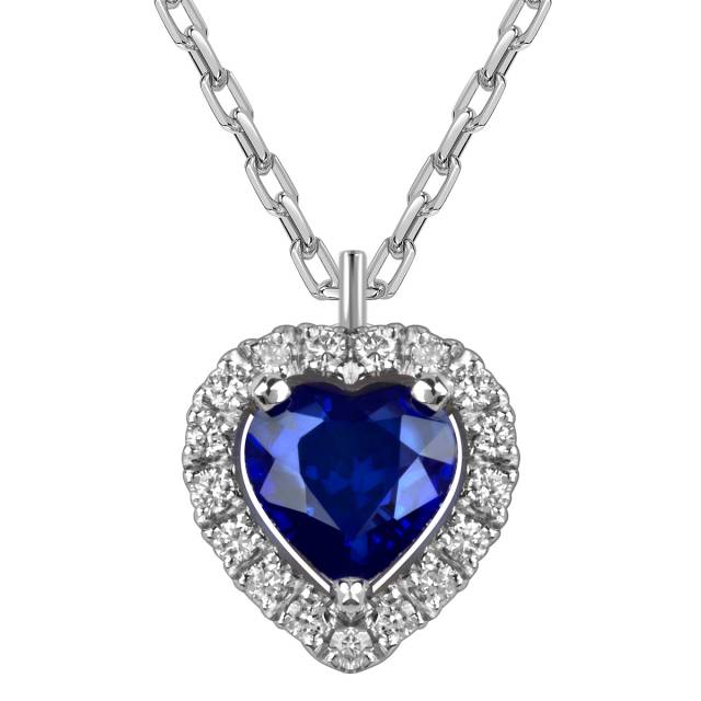 Колье из белого золота с бриллиантами сапфиром "Сердце" (060564)