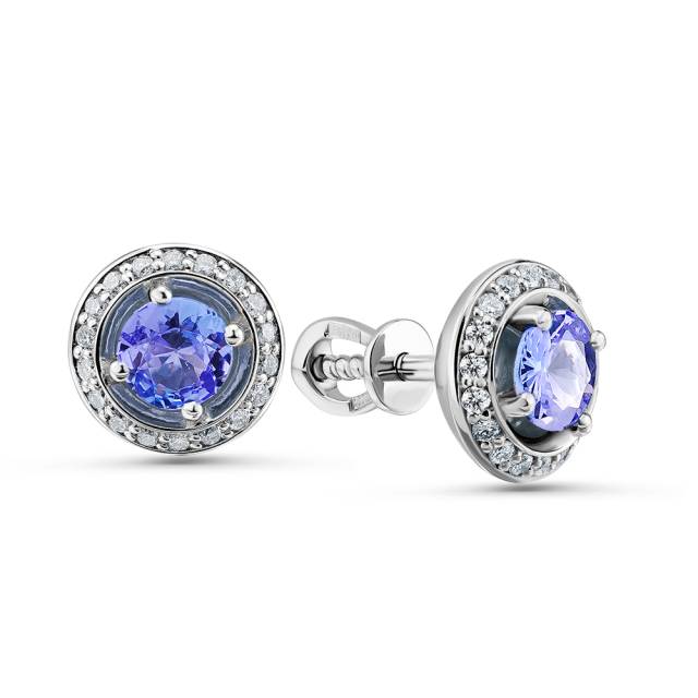 Серьги пусеты из белого золота с бриллиантами и танзанитами (050074)