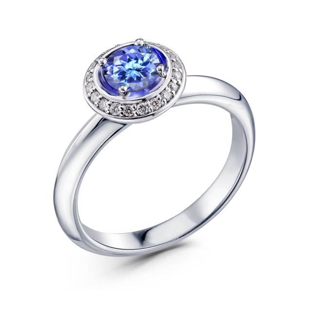 Кольцо из белого золота с бриллиантами и танзанитом (050026)
