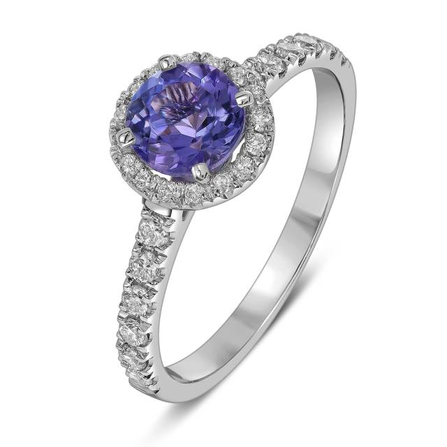 Кольцо из белого золота с бриллиантами и танзанитом (060610)