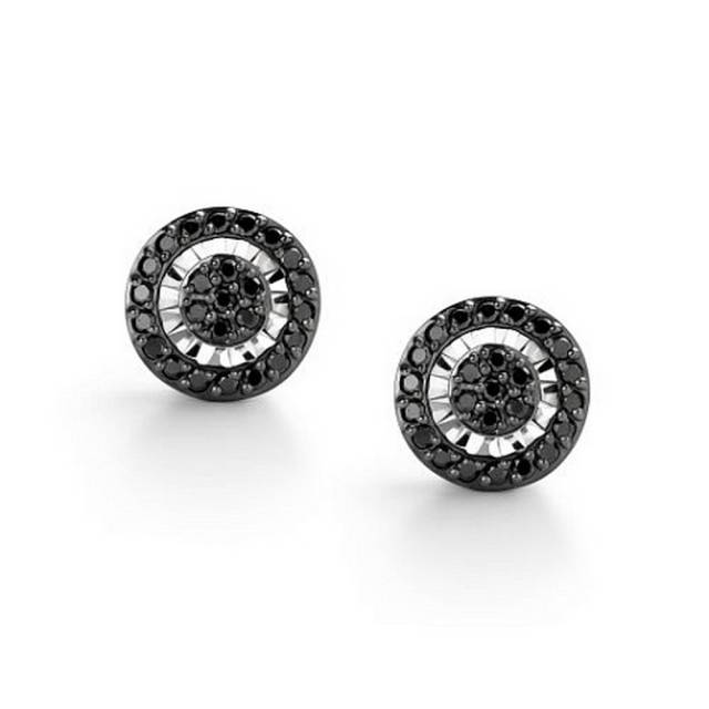 Серьги пусеты из белого золота с чёрными бриллиантами (058363)