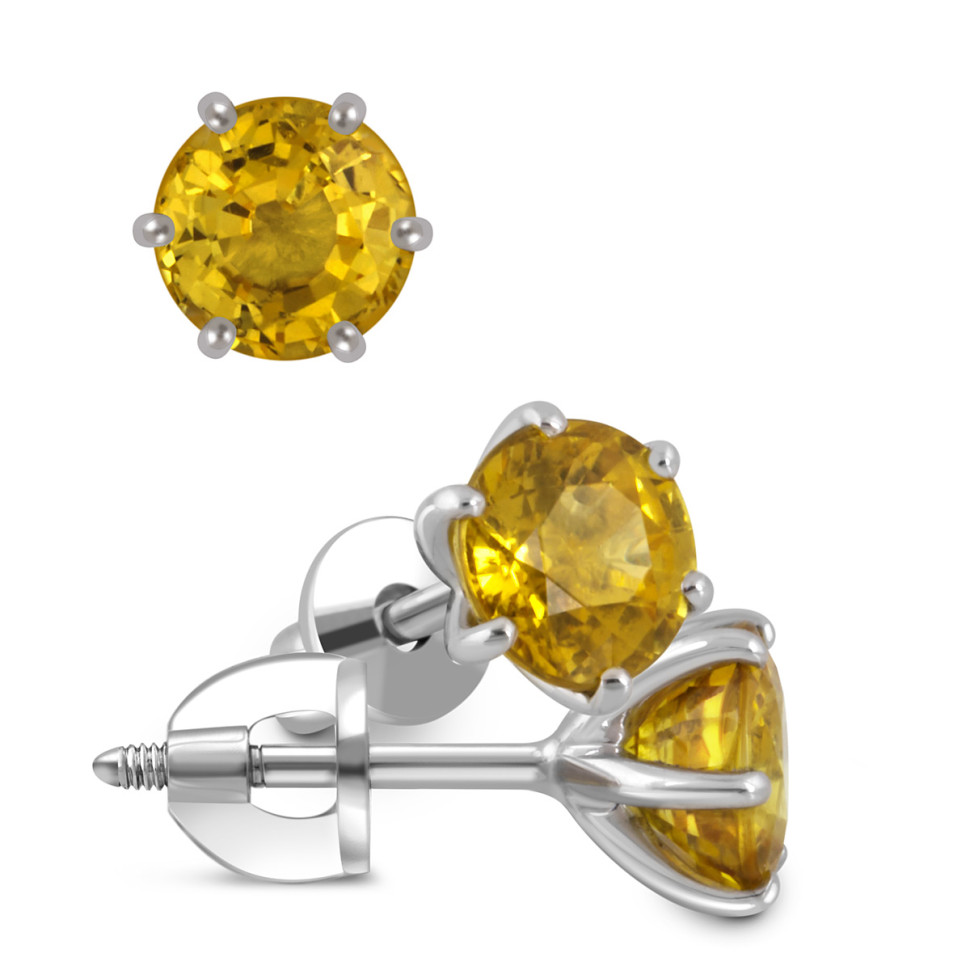 Серьги пусеты из белого золота с жёлтыми сапфирами (048058)