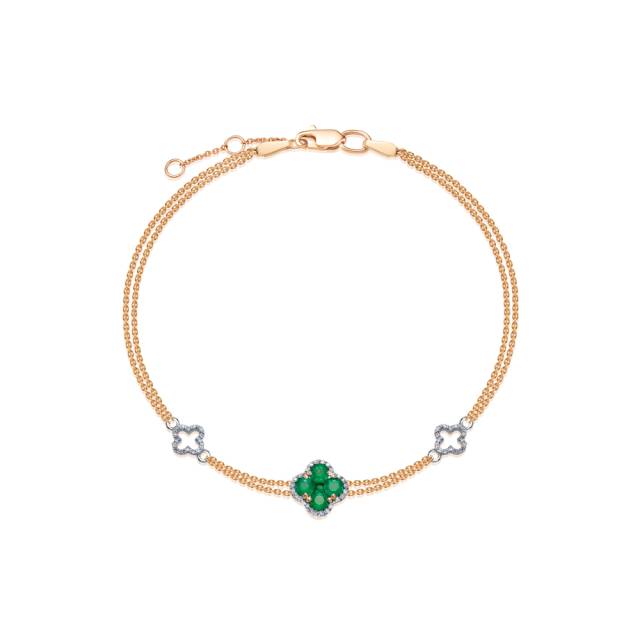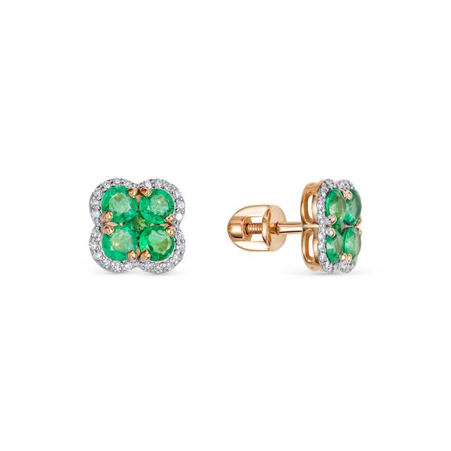 Серьги пусеты из красного золота с бриллиантами и изумрудами (053927)
