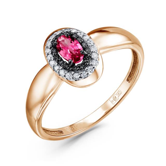 Кольцо из красного золота с бриллиантами и рубином (051419)