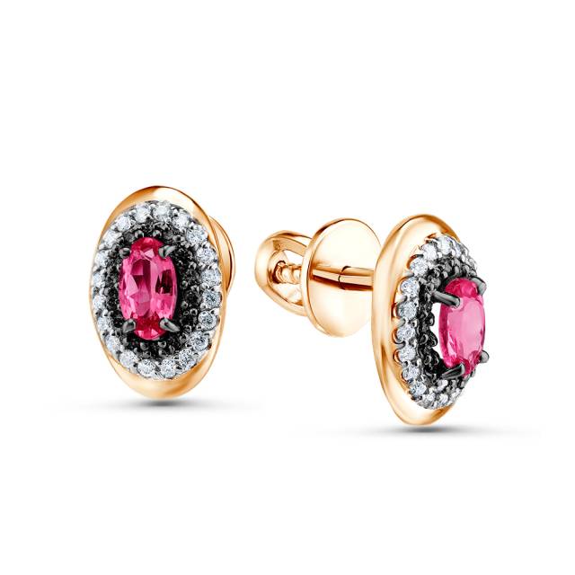 Серьги пусеты из красного золота с бриллиантами и рубинами (051417)