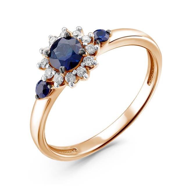 Кольцо из красного золота с бриллиантами и сапфирами (060089)