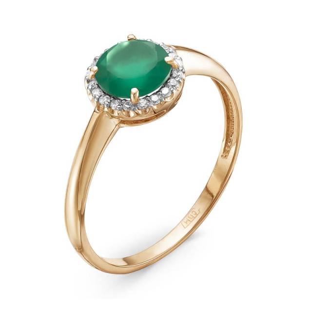 Кольцо из красного золота с бриллиантами и зелёным агатом (039974)