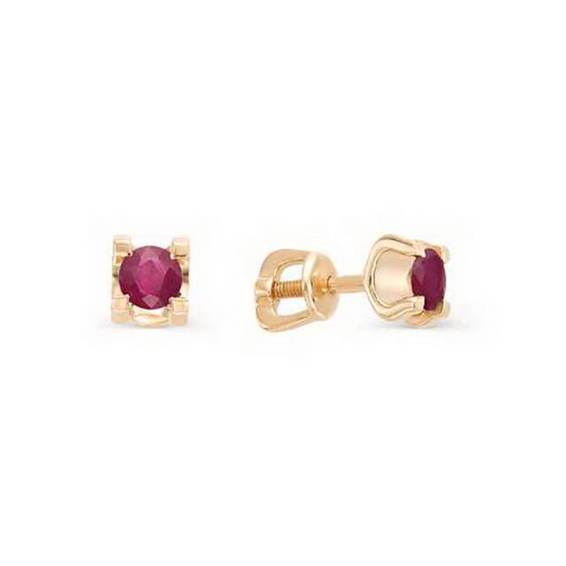 Серьги пусеты из красного золота с рубинами (033569)