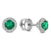 Серьги пусеты из жёлтого золота с бриллиантами и изумрудами (060996)