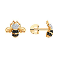 Серьги пусеты из жёлтого золота с бриллиантами "Пчёлы" (045085)