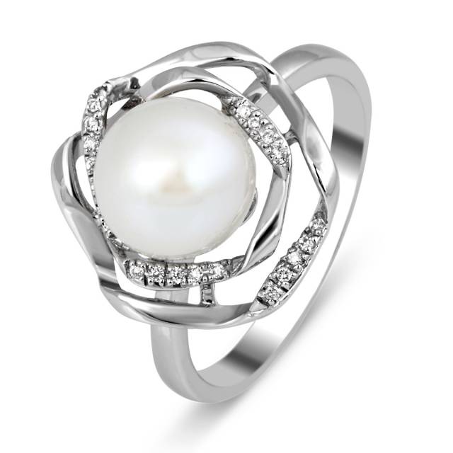 Кольцо из белого золота с жемчугом и бриллиантами (012623)